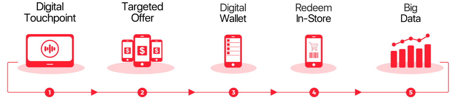 Send offers from the TV, Radio or Social to the consumers mobile wallet instantly!
